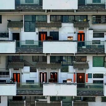 不过,整齐划一的门楼如复制粘贴般毫无个性可言,结合密集逼仄的环境,仅有“形”而无徽派建筑精华之“意”;为节省造价,其粗糙的装饰细节亦无突出亮眼的加分项;在结构布局上,为彰显徽派特色的门面不得不采用并排流过道,根据图片显示目测基本以小户型为主,且至少是1梯4户以上的布置。