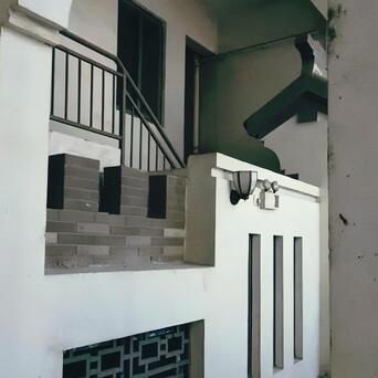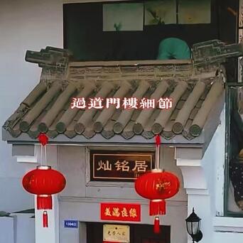 小区中高耸的5栋高层建筑从侧立面、南立面的角度算是中规中矩,顶多呈现出马头墙、黑白坡屋顶的徽派传统元素;但北立面乍看颇为新奇,过道中将极具徽派特色的门楼移植到了每家每户,作为住宅的脸面,家家户户张贴门联、悬以宅号,虽无突出之徽派“三雕”装点,但似乎门面儿十足、仪式感彰显。